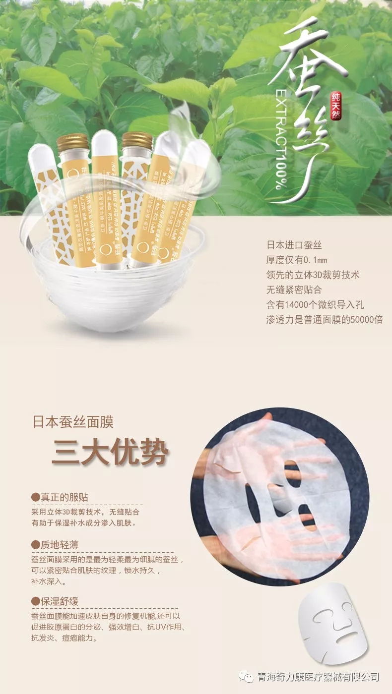 本次小編主推的醫(yī)用面膜采用的是100%日本天然蠶絲加工而成,天然蠶絲